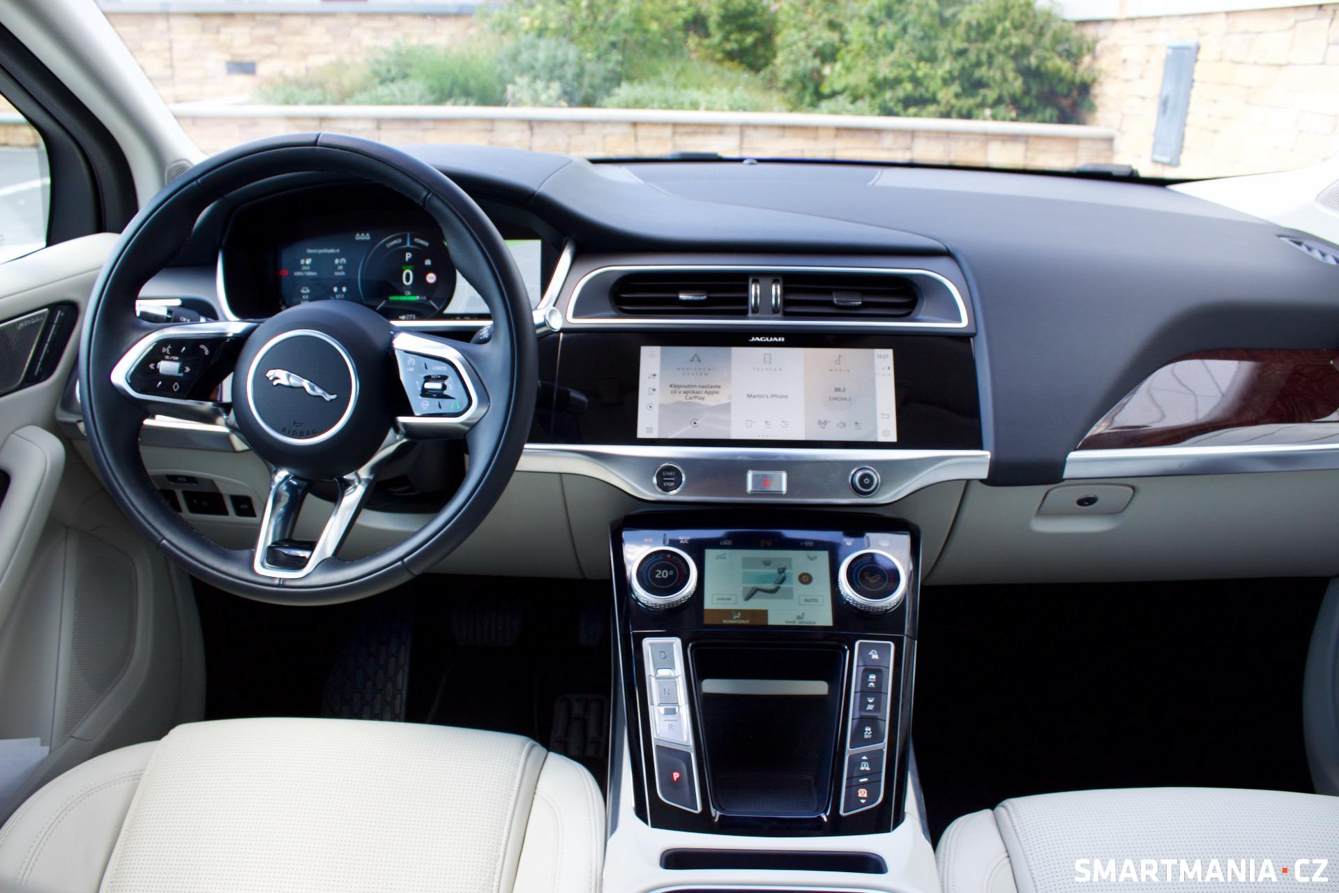 Naopak se mi po pravé ruce řidiče líbí dva displeje posazené nad sebou, přičemž tím spodním se nastavuje klimatizace. Je dobře, že má Jaguar celou sekci pro nastavování teplotního komfortu. Fajn jsou i fyzické otočné ovladače pro nastavení teploty a síly větráku. Že se ale „vytažením“ otočného ovladače ovládá i vyhřívání sedadel, to si mohli inženýři odpustit.