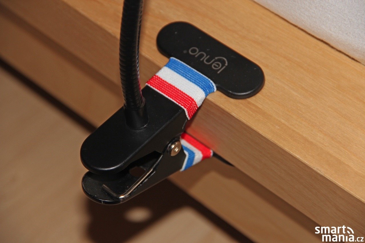 V tomto případě je řeč o atypickém držáku na telefon od značky Lenuo, který přijde vhod v případě, že chcete konzumovat obsah na displeji a mít přitom volné ruce. Držák je poměrně masivní – uchycení za rám postele či desky stolu zajišťuje kovový skřipec, ze kterého vychází zhruba 70 centimetrů dlouhý a tvarovatelný „krk“ s kloubem. Na ten navazují plastové úchyty, do kterých se umístí smartphone.