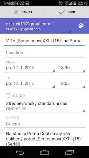 Aplikace je bezplatně ke stažení v Obchodě Play a vzhledem k velikosti 1,26 MB její přítomnost na stavu svého úložiště takřka nepocítíte. Po spuštění se před vámi objeví chronologicky seřazené pořady vysílané na vámi zvolených stanicích, alternativně můžete využít zobrazení v mřížce, kde je ke každému kanálu přiřazena časová osa. Posunem do stran pak procházíte jednotlivé dny. Pro lepší přehled jsou pořady rozděleny do kategorií rozlišených barevnými štítky, kdy každý označuje nějaký žánr (film, seriál, publicistika a podobně).