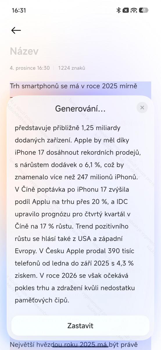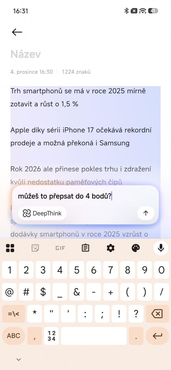 Úprava videí je jednodušší: napište „přidej hudbu a zpomal“, AI to zpracuje. Není to dokonalé jako u Pixelu, ale v češtině chápe příkazy přesně. Pro sociální sítě nebo rodinné videa super pomůcka. Pokud by vás zajímalo srovnání s Galaxy AI, Google Gemini u Pixelů 9 a Apple Intelligence na iPhonu, můžete se podívat na naše samostatné články. HyperAI zatím z hlediska počtu funkcí spíše paběrkuje.