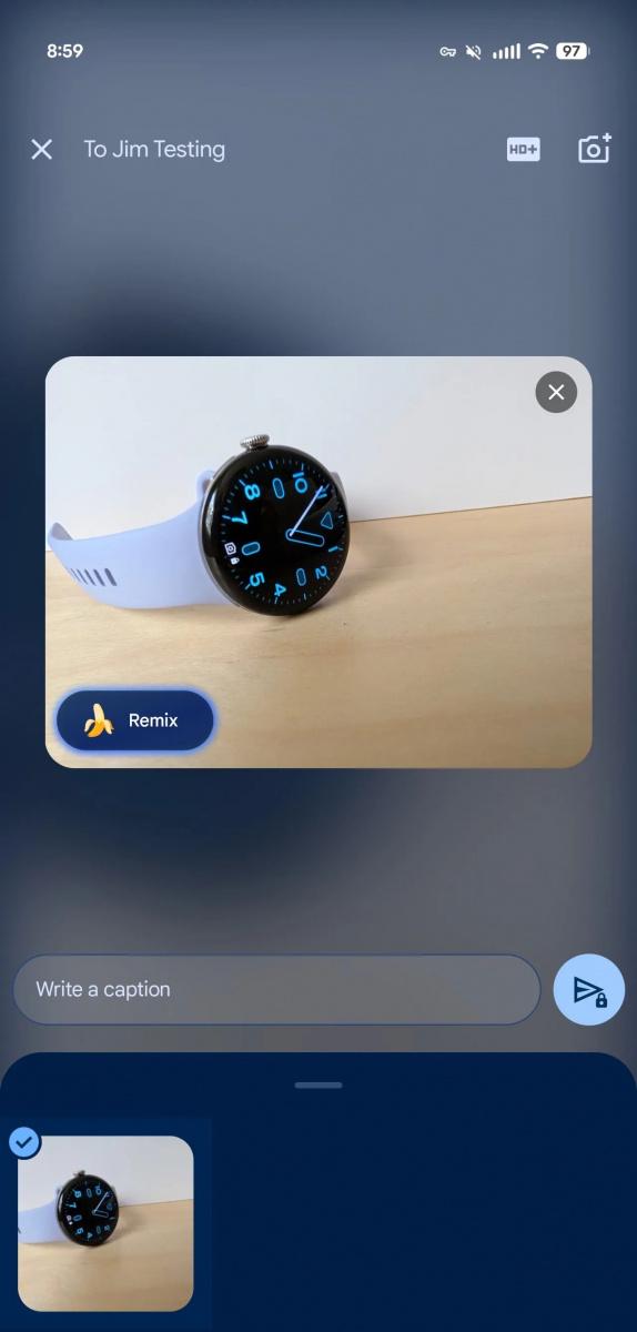 Jak už název napovídá, nová funkce vám umožní v aplikaci Zprávy „remixovat“ pořízené a zaslané snímky s využitím umělé inteligence. Díky modelu generování a úprav obrázků Nano Banana, který je již nyní k dispozici v Gemini a režimu AI, vám funkce Remix umožňuje vybrat fotografii a zadat prompt pro rychlou úpravu. Remix se v aplikaci zobrazí jako nové tlačítko ve tvaru pilulky v levém dolním rohu obrázku, na kterém dlouze podržíte prst nebo který manuálně vyberete v galerii.