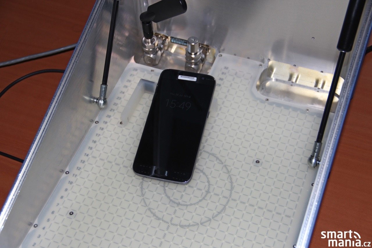 Testovací komoru jsme navštívili v době, kdy ještě nebyl oficiálně představen Samsung Galaxy Note7 (preview), a odpověď na dotaz, zda jej již zde mají k dispozici, byla kladná. Fyzicky jsme zařízení logicky vidět nemohli, jelikož zde platí přísná bezpečnostní opatření, ale dozvěděli jsme se, že se jedná o dobře maskovaný prototyp. S doposud nepředstavenými modely se nesmí fotit (kvůli EXIF informacím, které by mohly vést k jejich odhalení), a stejně tak se s nimi nesmí přihlašovat na sociální sítě či používat benchmarkovací programy (ano, přesně takhle v zahraničí vznikají “leaky” :-) ).