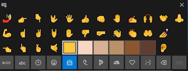 Microsoft také změnil virtuální klávesnici, což nejvíce ocení majitelé tabletů a hybridů. Rozložení klávesnice se více podobá mobilním Windows, nově je například možné psát tahy. Podporována je nová sada smajlíků Emoji 5.0, které lze navíc psát velmi jednoduše pomocí nového panelu vyvolaného klávesovou zkratkou “win + .”.