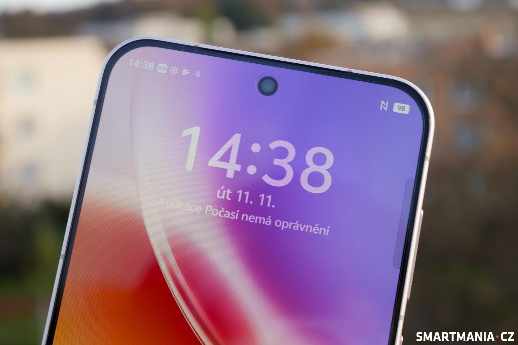 Vivo X300 sází na 6,31″ LTPO AMOLED panel s rozlišením 2 640 × 1 216 pixelů, který kombinuje vysokou jemnost, široké barevné pokrytí a podporu HDR10+ pro silný vizuální zážitek. Díky dynamické obnovovací frekvenci 1–120 Hz je scrollování i hraní plynulé, LTPO navíc umí snížit frekvenci u statického obsahu a šetřit tak energii. Skvělá je i čitelnost na přímém sluníčku – při běžném provozu se dostanete na hodnotu okolo 2 300 nitů, v peaku při HDR obsahu zvládne dokonce až 4 500 nitů.