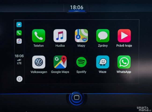 Je samozřejmostí, že telefony se umí s autem spojit pomocí Bluetooth pro telefonování nebo poslech hudby. Největší přínos vidíme v tom, že na velkém displeji lze mít spuštěný Waze, nově už i pro iPhone.