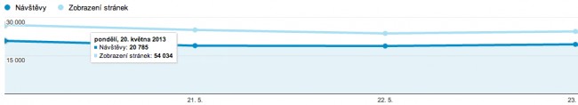 Návštěvnost v pondělí 20. května podle Google Analytics