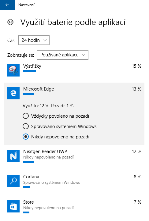 Pokud vám některá univerzální aplikace přestane pracovat dle očekávání, je možné jí přímo z nastavení resetovat.