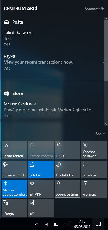 Ikonka pro vstup do Centra akcí se přesunula napravo od hodin, odkud by měla být lépe dostupná. I na ní se nově nachází kolečko, které ukazuje počet zmeškaných notifikací.