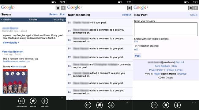 Před několika dny se na Marketplace objevila nová freeware aplikace, která usnadní přístup k vašemu profilu na službě Google+. Nejedná se o oficiálního klienta, ale pouze fanouškovskou aplikaci, která ve velké míře využívá klasické mobilní verze Google+. Skrze kontextovou nabídku se snadno dostanete na stránky s přehledem notifikací a formulář pro přidání nového příspěvku. Oproti mobilní verzi Google+ vlastně nic nového nenabízí, ale pro někoho může být výhodou, že se na svůj profil dostane přímo skrze aplikaci. Pokud se vám program z Marketplace nechce stahovat, můžete si připnout odkaz na mobilní verzi Google+ přímo z Internet Exploreru (tuto možnost najdete v kontextové nabídce).