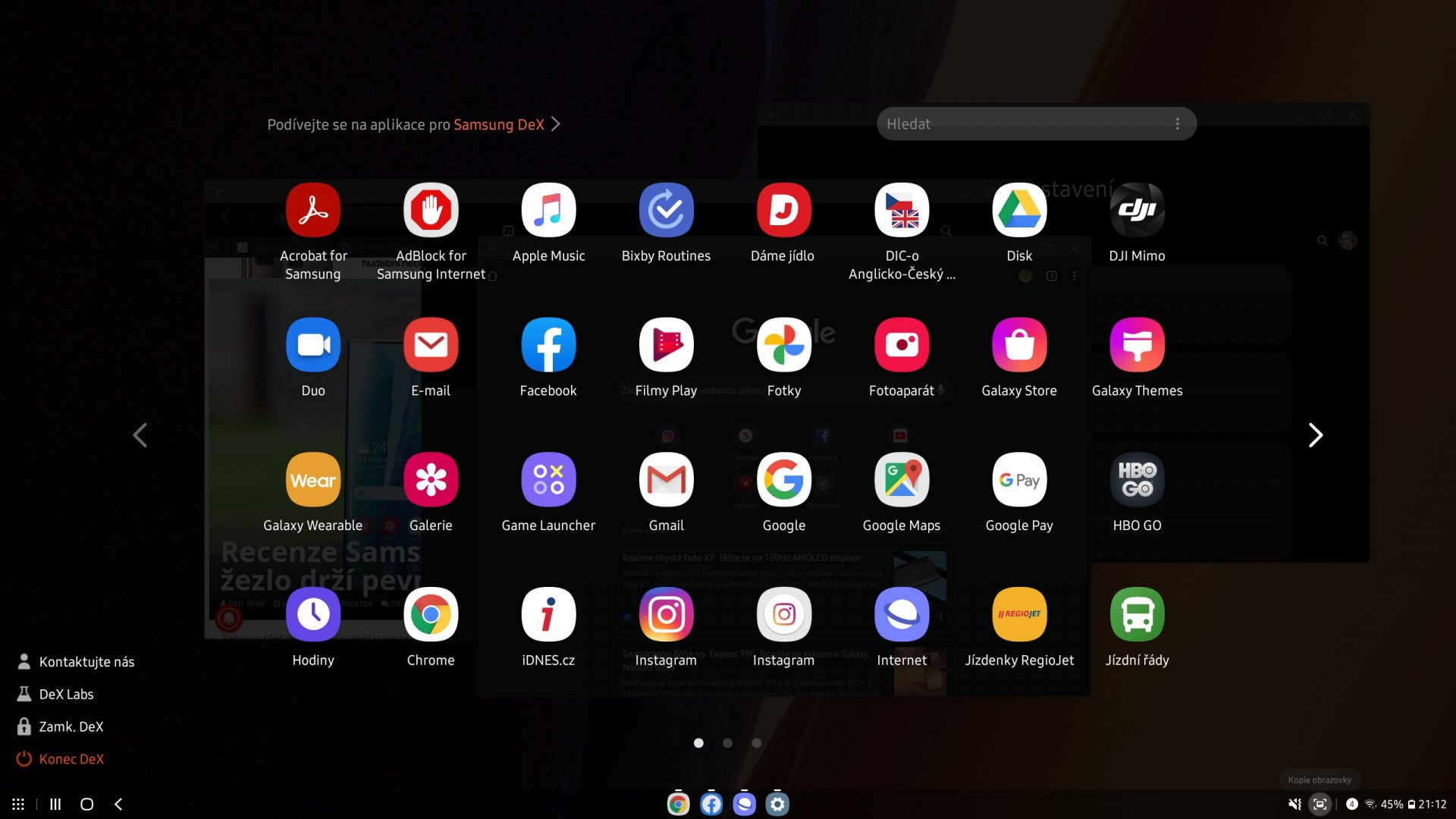 Pro ovládání systému můžete použít telefon, který funguje jako touchpad. Je škoda, že pokud máte k televizi připojenou klávesnici a myš, tak tyto periferie v režimu DeX nevyužijete. Je to kvůli tomu, že prostředí se na TV pouze “zrcadlí”.