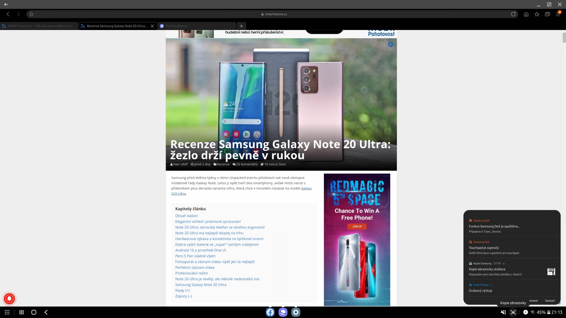 Abyste mohli bezdrátový počítačový režim spustit, musíte (zatím) vlastnit Samsung Galaxy Note 20 (Ultra) a chytrý televizor značky Samsung s operačním systémem Tizen. Já mám doma k dispozici model z roku 2017 a bezdrátový režim DeX jsem na něm spustil bez problémů.