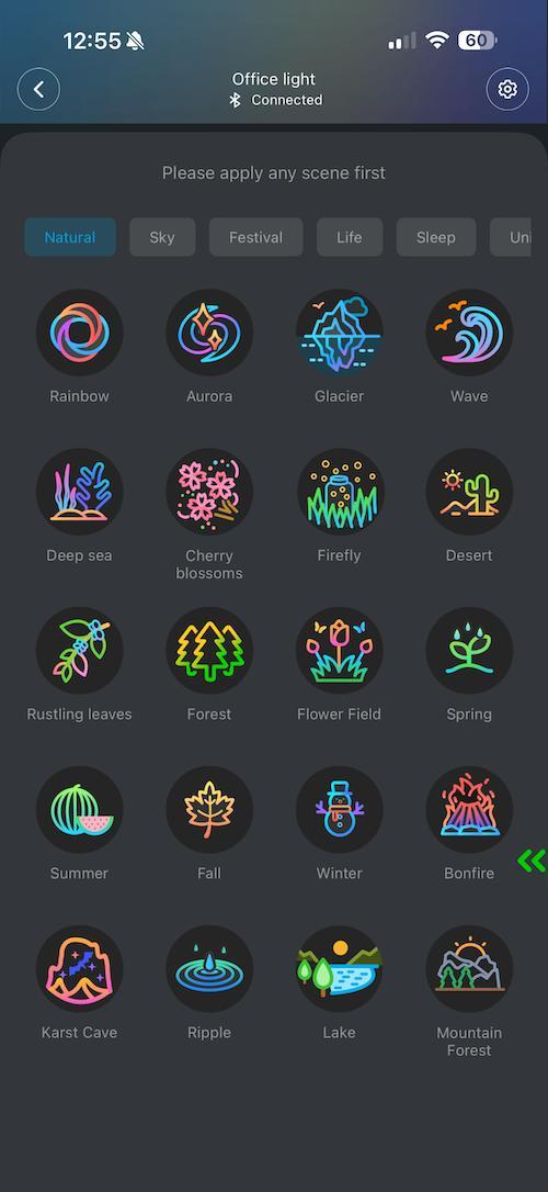 K ovládání můžete využít nejen chytré systémy (a hlasové asistenty Siri, Alexa a Assistant), ale také propracovanou aplikaci Govee Home. Ta nabízí široké možnosti konfigurace světla – od profilů pro běžné denní svícení, přes různé barevné scény a motivy, blikání a svícení dle hudby, až po ruční konfiguraci jednotlivých segmentů. Na své si tedy přijdou i opravdoví hračičkové. Drobnou vadou na kráse pro méně zkušené je absence české lokalizace.