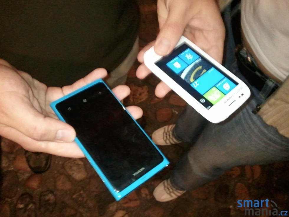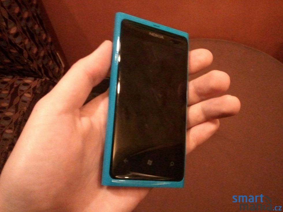 Nová Lumia 800 byla k odzkoušení v obou variantách, v černé i modré. Vypadá luxusně, pevně, je vyrobená opravdu z jednoho kusu materiálu. Působí dobře, ani trochu plastovým dojmem. Modrá varianta měla lesklou úpravu, černá byla matná (v téhle variantě vypadala prakticky stejně, jako Nokia N9). Ještě se bude vyrábět v bílé barvě, v té prý zatím existuje v matné i lesklé úpravě. Velikostně je menší, než například Omnia 7, do ruky padne dobře. AMOLED displej na mě působil velice dobře, má o něco tmavší a sytější barvy než Samsung Omnia 7. Displej je ale o něco menší, možná by se tam ještě trochu větší úhlopříčka vešla. Sklíčko nad displejem je po stranách trochu zahnuté, ale ničemu to nevadí. Přední strana se celkem upatlává. Jinak telefon působí kompaktním, pevným, odolným dojmem. Kdybych si měl vybrat, nebál bych se ani jedné z těchto Nokií. Každá samozřejmě ale bude mít jinou cílovou skupinu. Jinak Lumia 800 v jasné modré barvě působí opravdu svěžím dojmem, matná úprava černé varianty je zase lepší na dotek.
