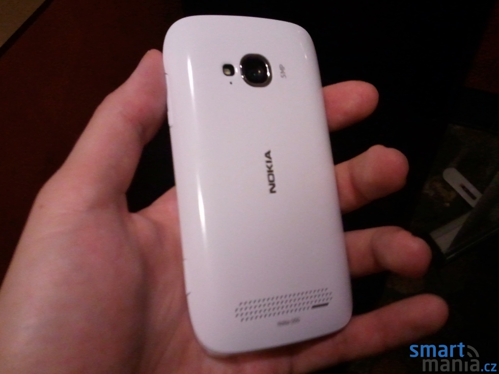 Zadní strana je lesklá, telefon ale nevyklouzává z ruky. Věřím, že v ostatních barevných kombinacích bude vypadat ještě lépe než v té bílé. Hardwarová tlačítka jsou super. Displej je trochu zapuštěný, rámeček kolem něj docela velký. Jeho kvalita zobrazování je taková normální, průměrná, jako u běžných HTC (nejedná se o AMOLED, ale klasický TFT LCD). Věřím, že tenhle telefon se ale bude hodně dobře prodávat, zvlášť, jestli bude za výhodnou cenu. Nová navigace Nokia Drive k odzkoušení nebyla, vestavěný fotoaparát jsme také nezkoušeli.