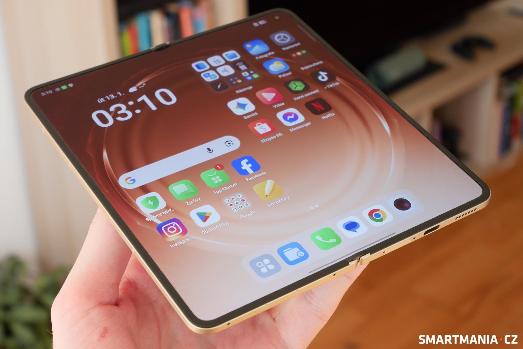 Na omak už je žlábek víc zřetelný, ale rozhodně ne tolik jako u konkurence. Při letmém srovnání se Samsungem Galaxy Z Fold 7 a Honor Magic V6 je patrné, že Oppo udělalo opravdu velký kus práce a posunulo segment ohebných displejů o několik úrovní dál. Z vlastní zkušenosti mohu potvrdit, že i hlubší ohyby přestanete po relativně krátkém čase registrovat. Tady si ho možná nevšimnete už od první chvíle.