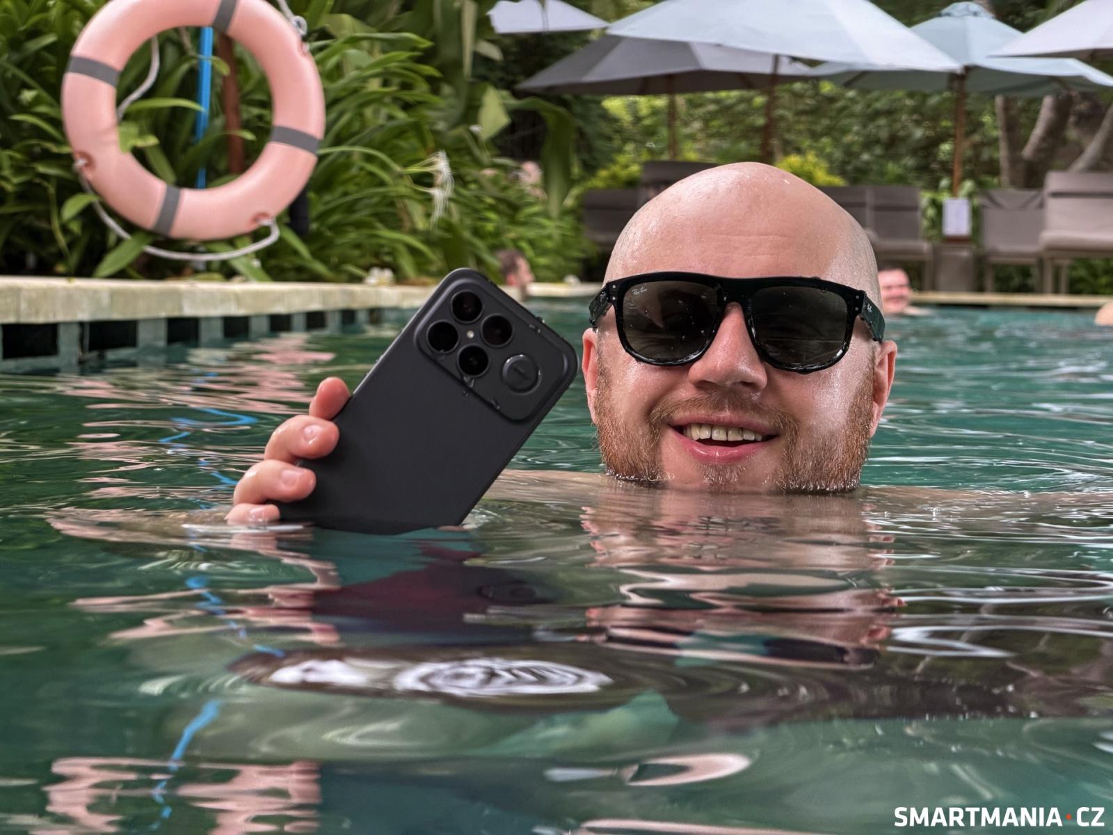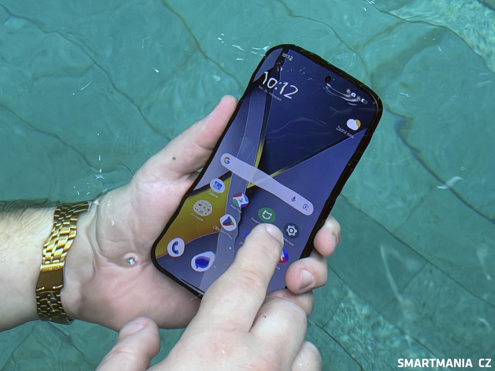 Díky tomu se pyšní (stejně jako jeho skleněný sourozenec F8 Pro) zvýšenou odolností IP68, která zajišťuje kompletní odolnost vůči vniknutí prachu i vody. Jak se můžete přesvědčit z přiložených fotek, telefon už jste stihli otestovat v bazénu a vše přežil bez jakékoliv újmy.