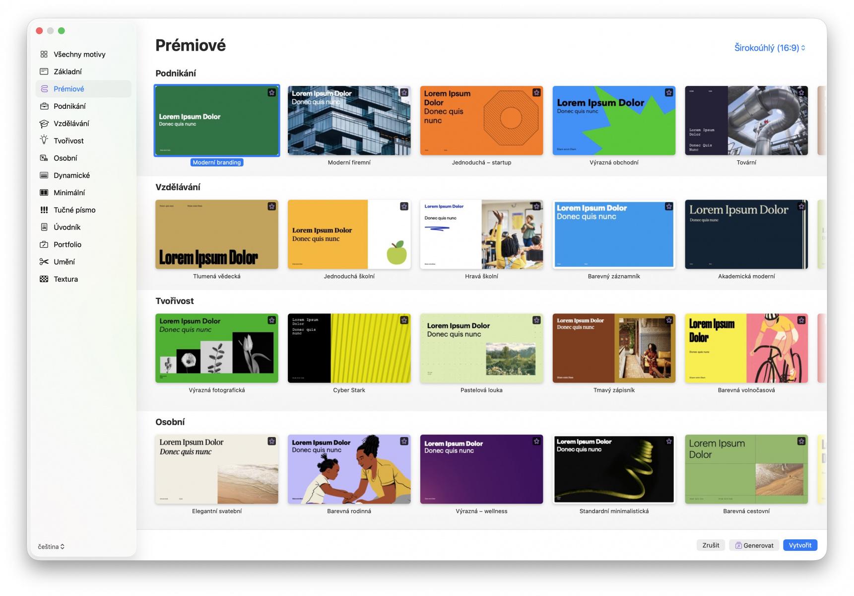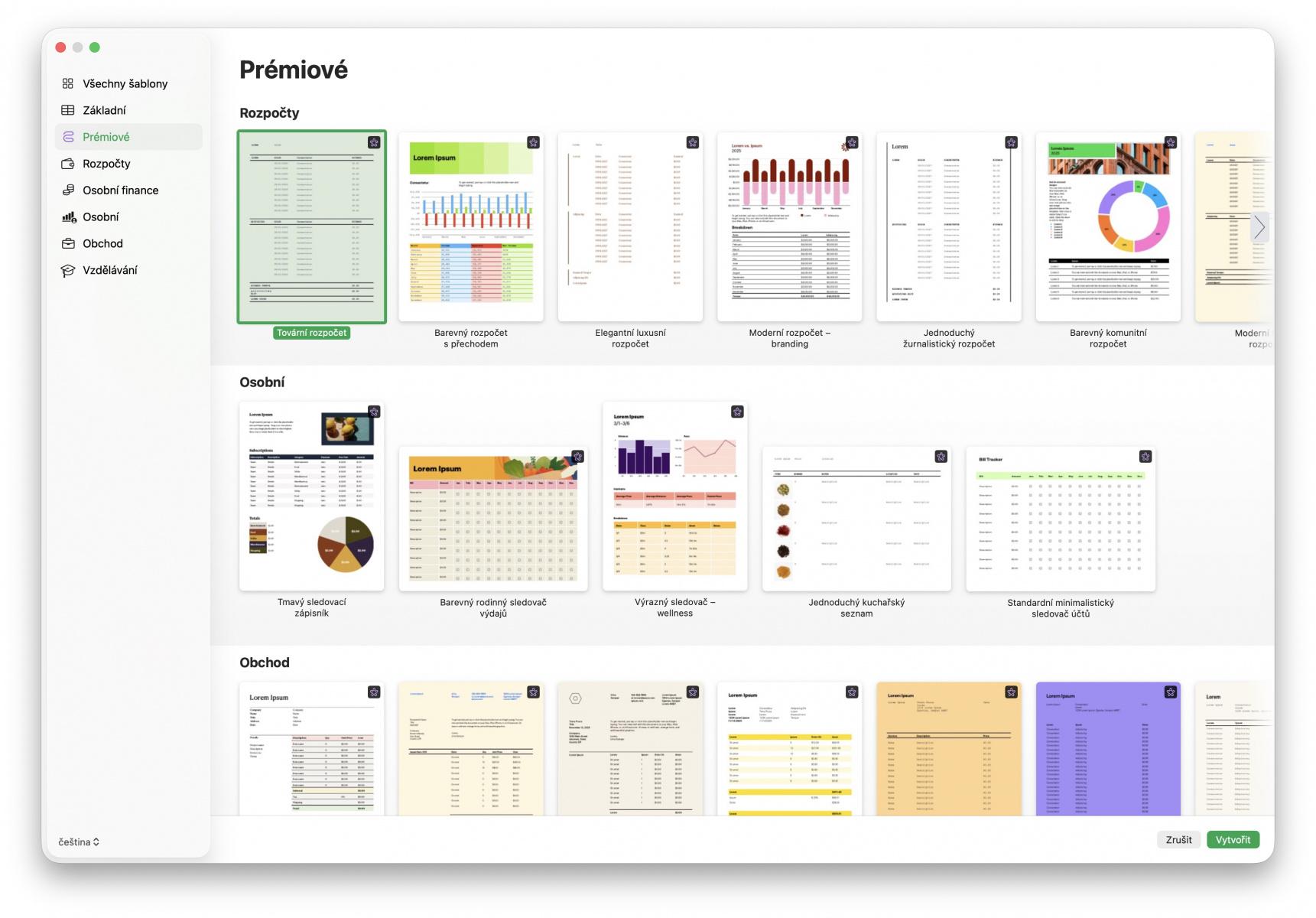 V Pages jde typicky o certifikáty a diplomy, brožurky, pohlednice, informační bulletiny nebo menu do vaší nové restaurace, v Keynote jde nejčastěji o prezentace na různé téma, v tabulkovém editoru Numbers se setkáme například s přednastavenými šablonami pro rozpočty a další.