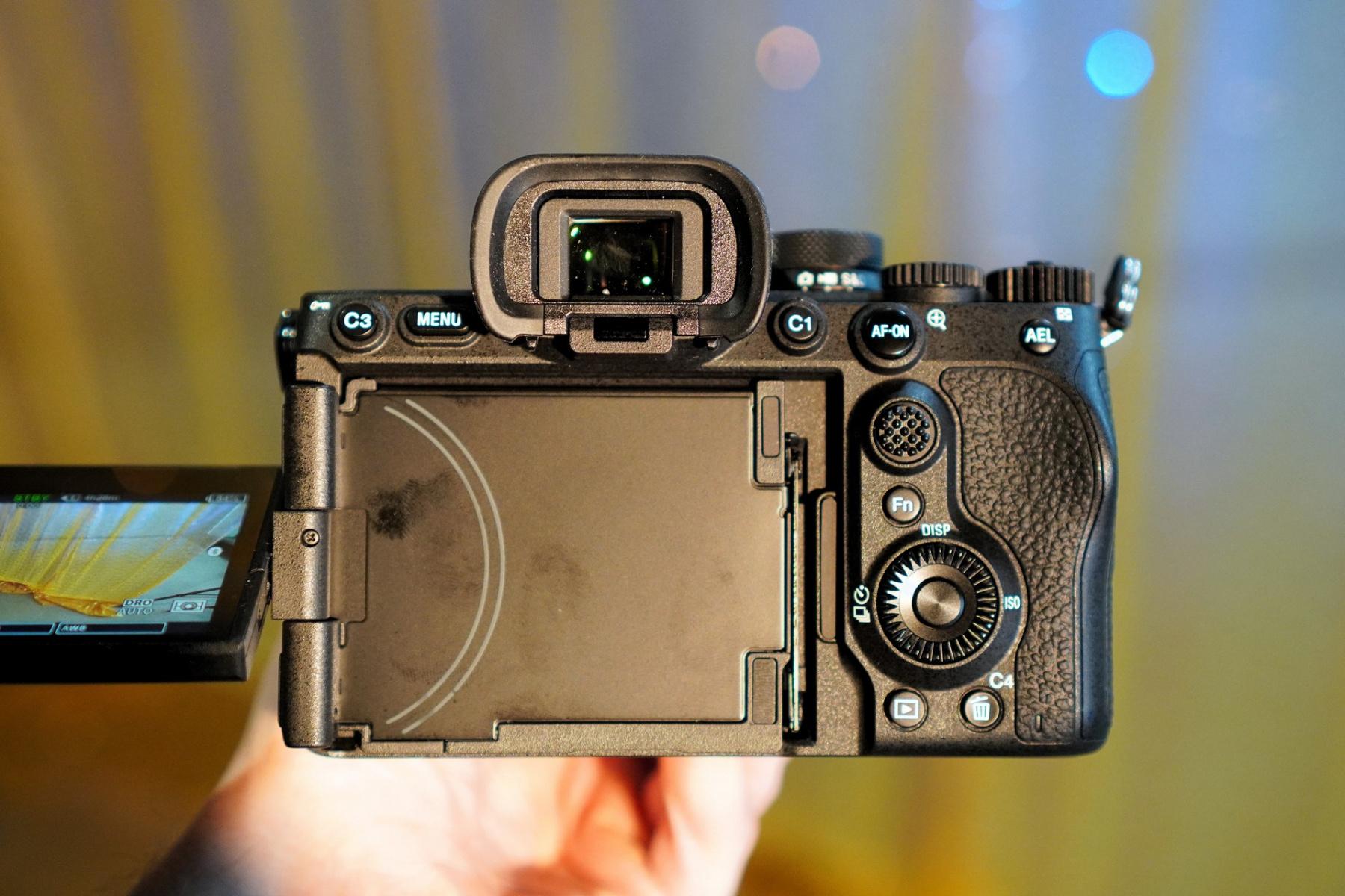 Výklopně-otočný čtyřosý displej je velmi praktický – umožňuje klasické vyklopení do boku, ale nově i vytažení před sebe. Obrazovka má dostatečný jas, je krásně jemná (téměř dvojnásobně) a navíc bez kompromisů použitelná pro horizontální i vertikální práci. Nyní se totiž rozhraní systému přizpůsobuje orientaci fotoaparátu, a to i v hledáčku.