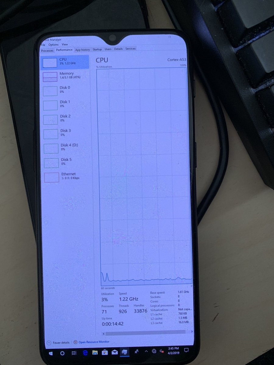 Jedná se opět o speciální verzi Windows 10 pro zařízení s ARM procesory, ta však umožňuje pomocí emulace spouštět i klasické desktopové win32 programy. Na OnePlus 6T se podařilo systém nainstalovat a spustit, dokonce bylo možné použít ovladač dotykové vrstvy z Lumie 950 XL a zajistit tak podporu dotyku. Nefunkčních věcí je ale stále dost, zejména nelze přistupovat k interní UFS paměti.