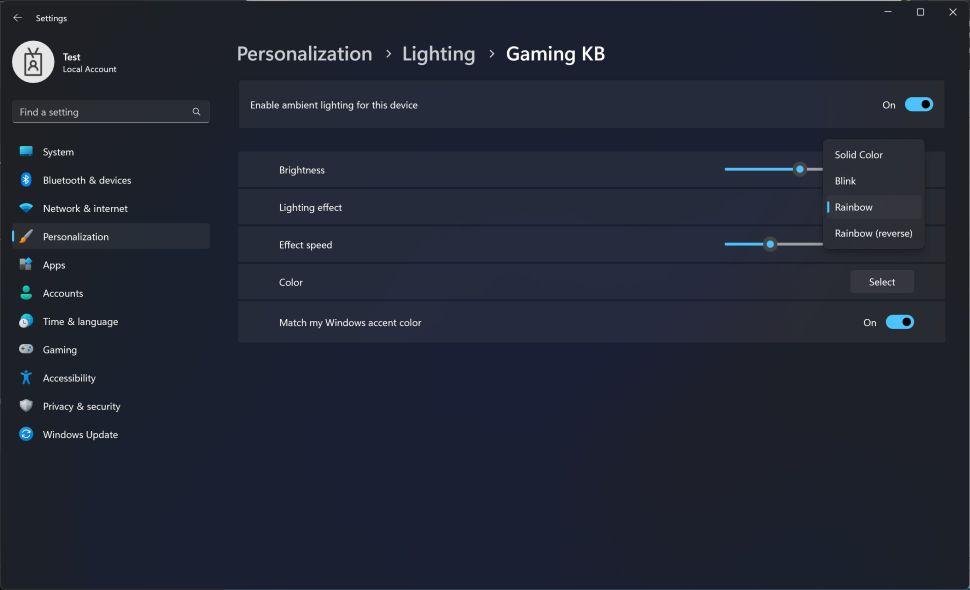 Windows 11 se dočkají i úprav nastavení. Přibyde například menu pro nastavení RGB příslušenství – herních klávesnic, myší, monitorů apod. Přímo z nastavení půjde měnit podsvícení, efekty, barvy apod., aniž by bylo nutné spouštět dedikované aplikace výrobců příslušenství.