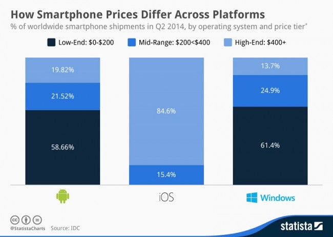 Přitom se jedná o jedinou konkurenci Microsoftu v segmentu dražších zařízení, většina telefonů s Windows Phone včetně Lumií spadá do kategorie low-end, kam také podle viceprezidenta Alcatel OneTouch patří. Historicky nejprodávanějším modelem s Windows Phone se stala Lumia 520 s drtivým náskokem před ostatními, výběr mezi elitními modely zcela chybí. Některé modely (zejména v USA) včetně zmíněného HTC One jsou navíc zatíženy exkluzivitou u určitých operátorů, což je také výrazná stopka k jejich budoucímu rozšíření.