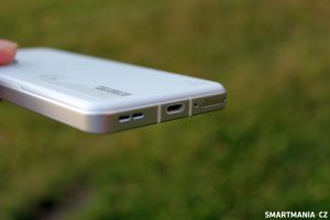 Spodní strana s žádným překvapením nepřišla, potkáte na ní reproduktor, USB-C konektor a šuplíček na dvě nano SIM karty. Sorry, paměťovky, už jste retro. O to víc překvapí, že sluchátkový jack Zenfone za přežitek nepovažuje, směle si tak můžete připojit pecky, které vyfasujete v mezinárodním rychlíku. Nebo raději vlastní hi-fi sluchátka, která pohrdavě hledí i na kodek LDAC.