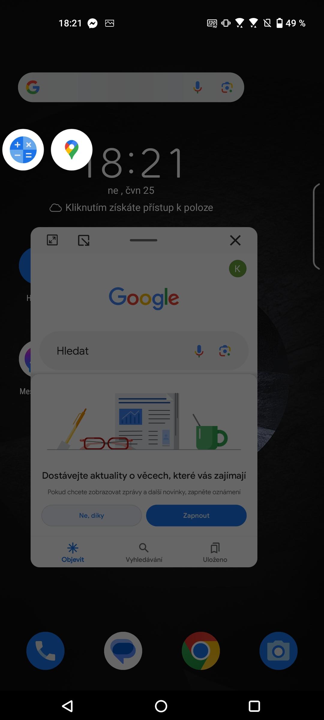 Úplně mi nesednul multitasking v podání Asusu. Na displeji si můžete zobrazit pomocný panel, kterým se spouští nejen aplikace, ale třeba i zapínání Wi-Fi. Klepnutím na něj se otevře vybraná aplikace v plovoucím okně, jehož velikost jde měnit. Co se stane, když se rozhodnete ve zmenšeném režimu spustit druhou aplikaci? Otevře se, ale předchozí okno se scvrkne do ikonky. Dvě aplikace najednou spatříte jen na klasické, systémové rozdělené obrazovce, ale pokud byste si rozmysleli, jaký režim chcete použít, neobejdete se bez mezikroku, kdy zmenšené okno musíte maximalizovat a teprve pak ho můžete zobrazit na půli obrazovky.