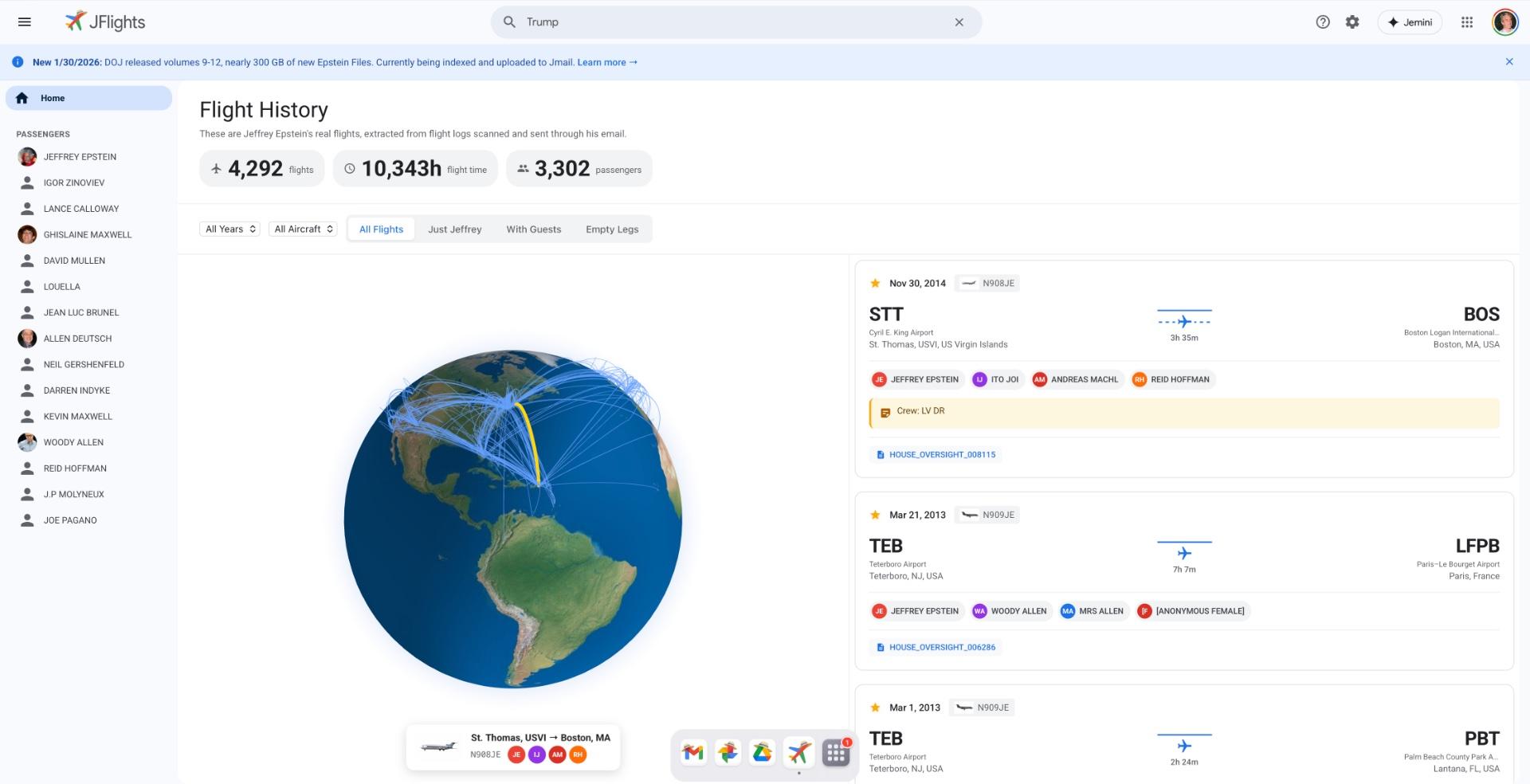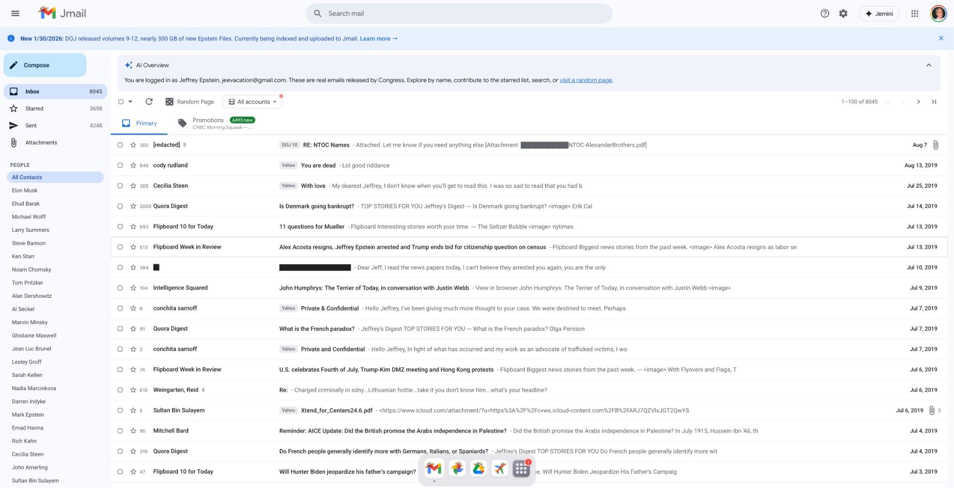 Vývojáři Luke Igel a Riley Walz veškerý obsah týkající se kauzy Epstein files uploudovali na vlastní web jmail.world, který vlastně vypadá jako Gmail, ale najdete v něm pouze e-maily a komunikaci Jeffreyho Epsteina. Rozhraní je extrémně responzivní, kromě e-mailu nabízí i širokou knihovnu fotografií JPhotos, cloudové úložiště JDrive nebo přehled Epsteinových letů JFlights.