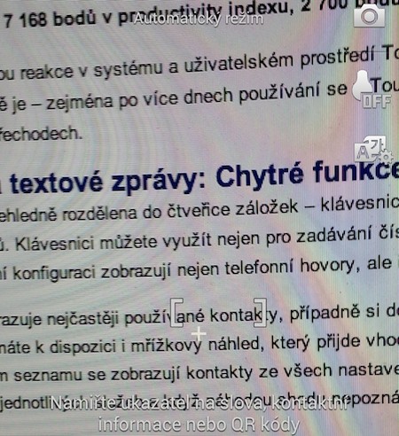 Optická čtečka při rozpoznávání textu hledáčkem fotoaparátu