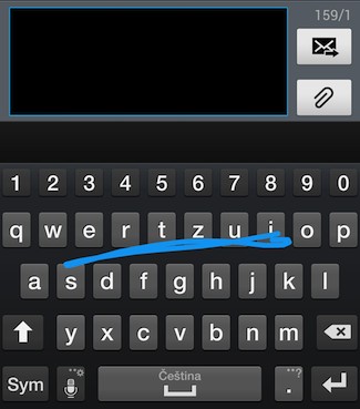 Zadávání znaků klasickým vyťukáváním a metodou Swype (tahání prstem po písmenkách)