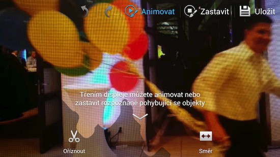Animovaná fotografie vám umožní nechat část scény statickou a část animovanou. Něco podobného nabízela už Nokia Lumia 920 s aplikací Cinemagraph (ukázka). Na displeji pouze stačí vybrat oblast, která se má animovat a která naopak zůstane statická; výsledky často působí velmi komickým dojmem a rozhodně s nimi pobavíte své přátele.